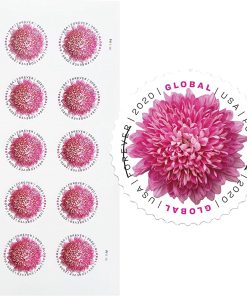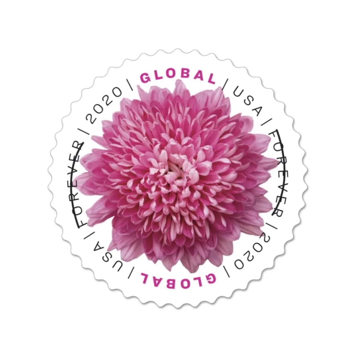 Chrysanthemum is a new Global Forever international rate stamp that can mail a 1-ounce letter to any country where First-Class Mail International service is available. The stamp is round and features a photograph of a pink chrysanthemum on a white background. Taken from above, the photograph highlights the intricate beauty of the bloom. The art director was William J. Gicker. Greg Breeding designed the stamp with an existing photograph by Hong Vo. This stamp was issued on April 24 in Burlingame, CA.WASHINGTON – The U.S. Postal Service revealed two additions to the 2020 stamp program: Presorted Star, a convenient stamp for large-volume mailers, and Chrysanthemum (Global), an international rate stamp.