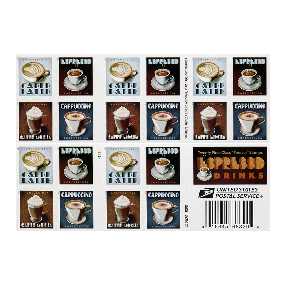 2021 U.S. Espresso Drinks First-Class Postage USPS Forever Stamps 100pcs/Pack (20PCS/Booklet)