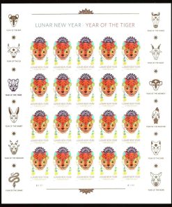 2022 Chinese New Year, Lunar New Year, Year of The Tiger First-Class Postage USPS Forever Stamps 100pcs/Pack (20PCS/Booklet)