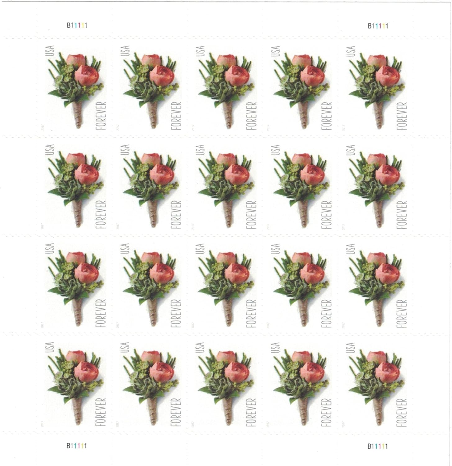 Celebration Boutonniere Pink Rose First-Class Postage USPS Forever Stamps 100pcs/Pack (20PCS/Booklet)