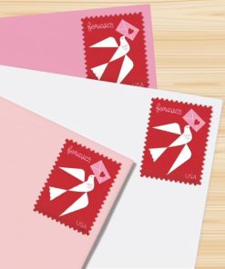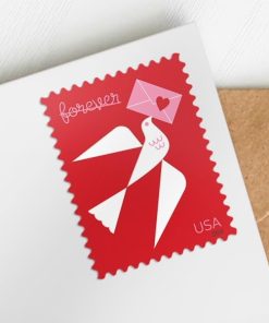 The envelope carried by the bird on this stamp serves a purpose similar to the stamp itself, hinting at a fond greeting from a loved one even before the letter or card has been opened. The red, white, and pink of this design call to mind the traditional colors of Valentine’s Day cards and decorations, but as with all previous Love issuances since the series began in 1973, this stamp encourages us to open our hearts and express our feelings on any occasion—especially when it comes as a welcome surprise.