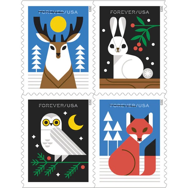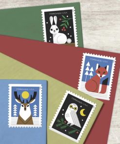 Winter Woodland Animals Stamps 2023 First-Class Postage USPS Forever Stamps 100pcs/Pack (20PCS/Booklet)